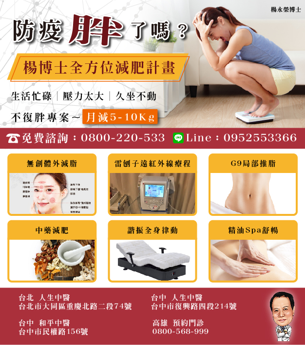 楊博士全方位減肥不復重專案,除了依照個人體質配藥加強代謝、抑制食慾、排油。